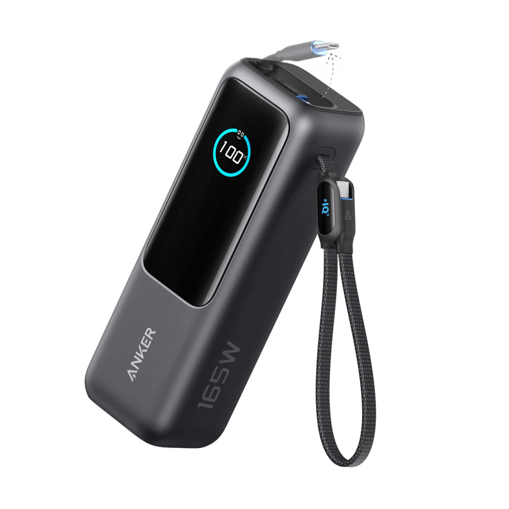 This 25,000mAh power bank delivers a total power output of 165W through four ports, including two 100W USB-C outputs. Its compact design, built-in cables, and smart display make it a complete power solution for all your daily and travel needs.