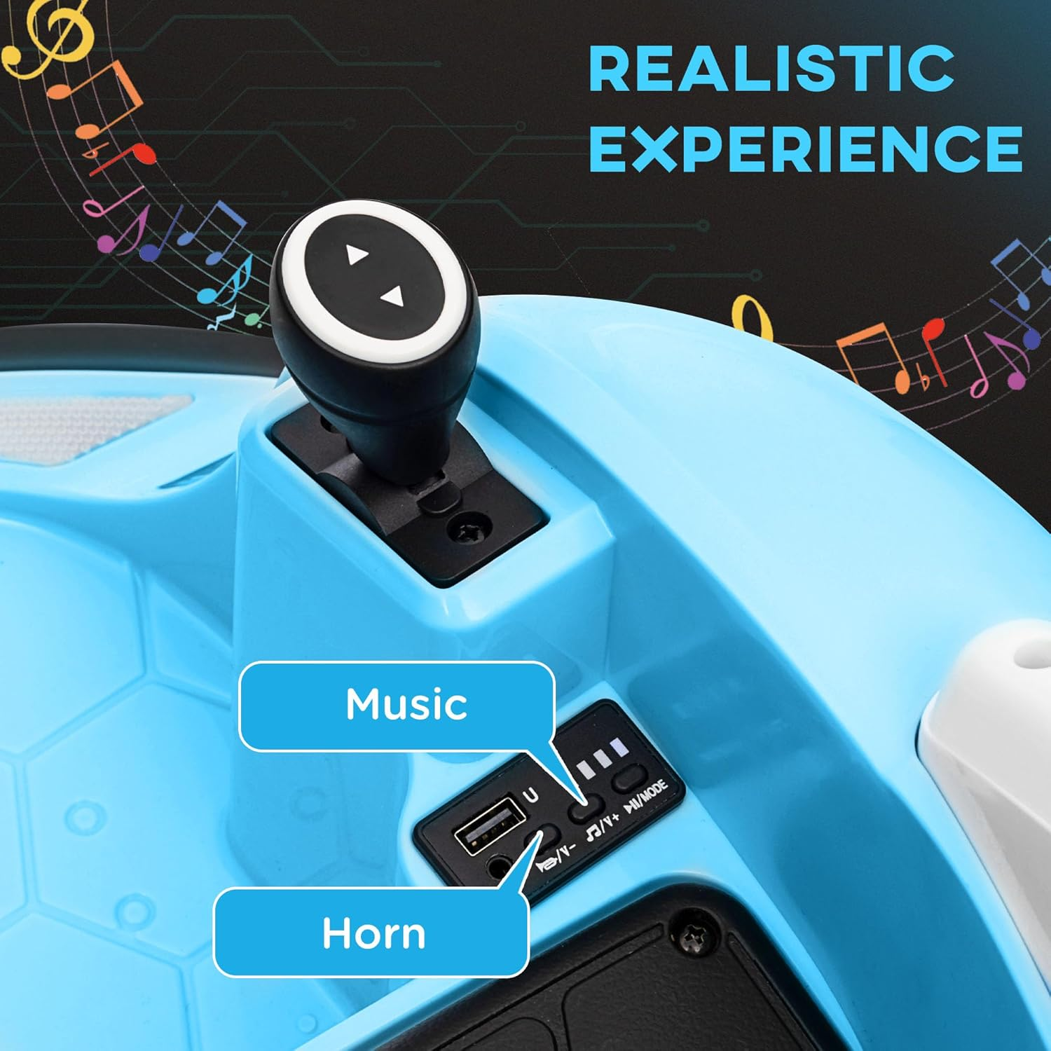 Bright LED lights, cheerful music, and a working horn create an immersive ride that keeps kids smiling and engaged.